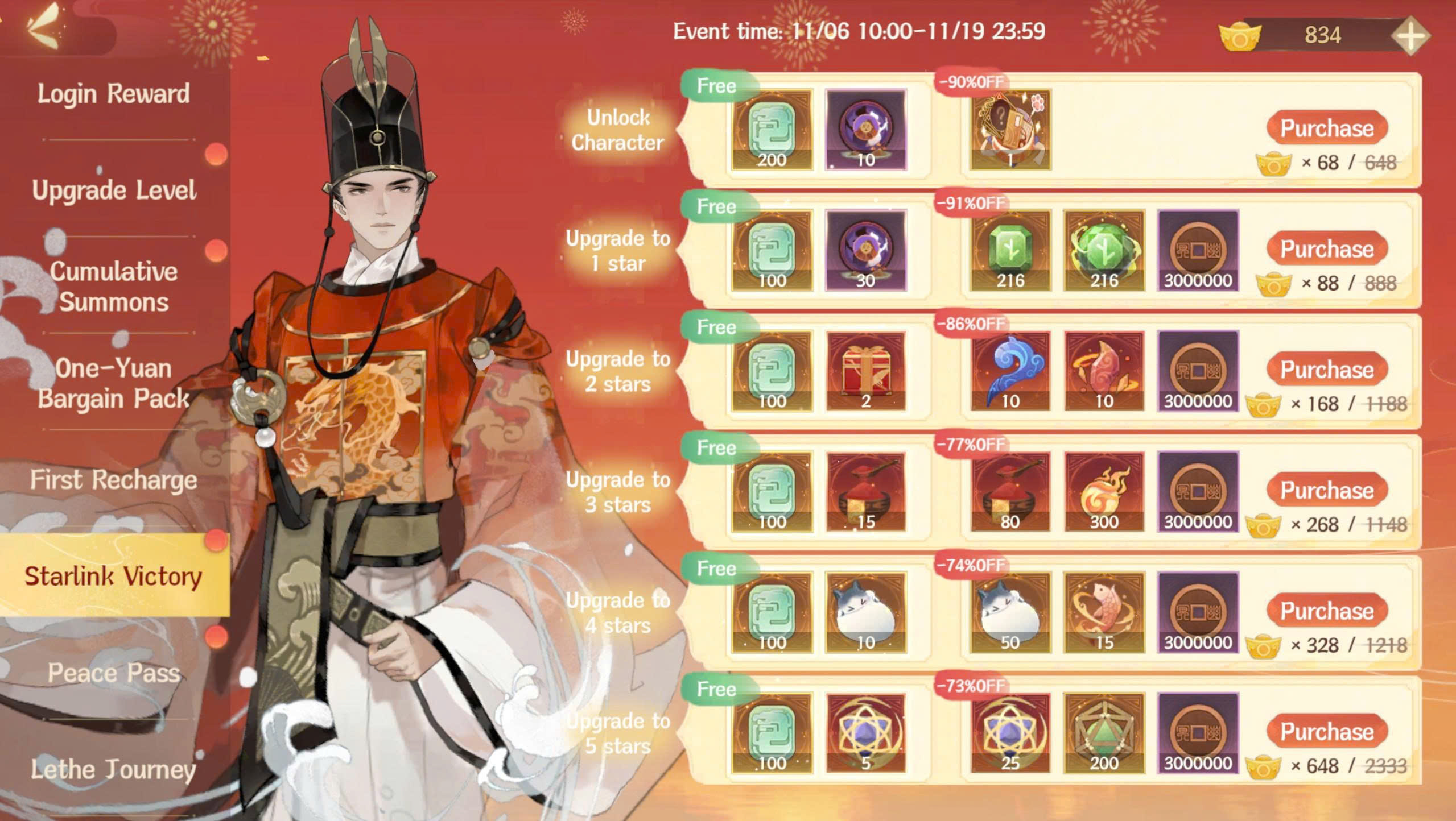 Giải thích quy tắc: Trong thời gian diễn ra hoạt động, sau khi triệu hồi Danh Sĩ yêu cầu và nâng sao, Sứ Quân có thể nhận miễn phí các phần thưởng như Ngọc, Miêu Tiên Bao, Tinh Dưỡng Miêu Cầu,... Ngoài ra Sứ Quân còn có thể mở khóa các gói tài nguyên với giá ưu đãi.